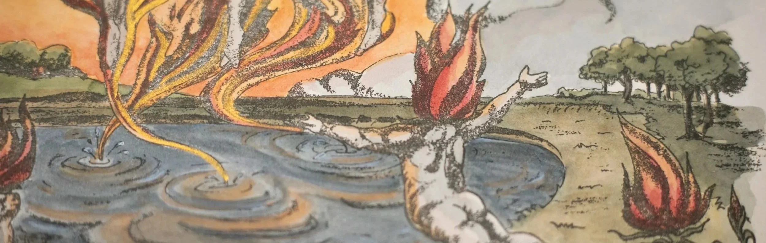 Using letterpress and watercolors in the style of Blake, we first recreate two of his plates, then present our own poems and illustrations, which incorporate imagery found in his works, to push our inquiry further.